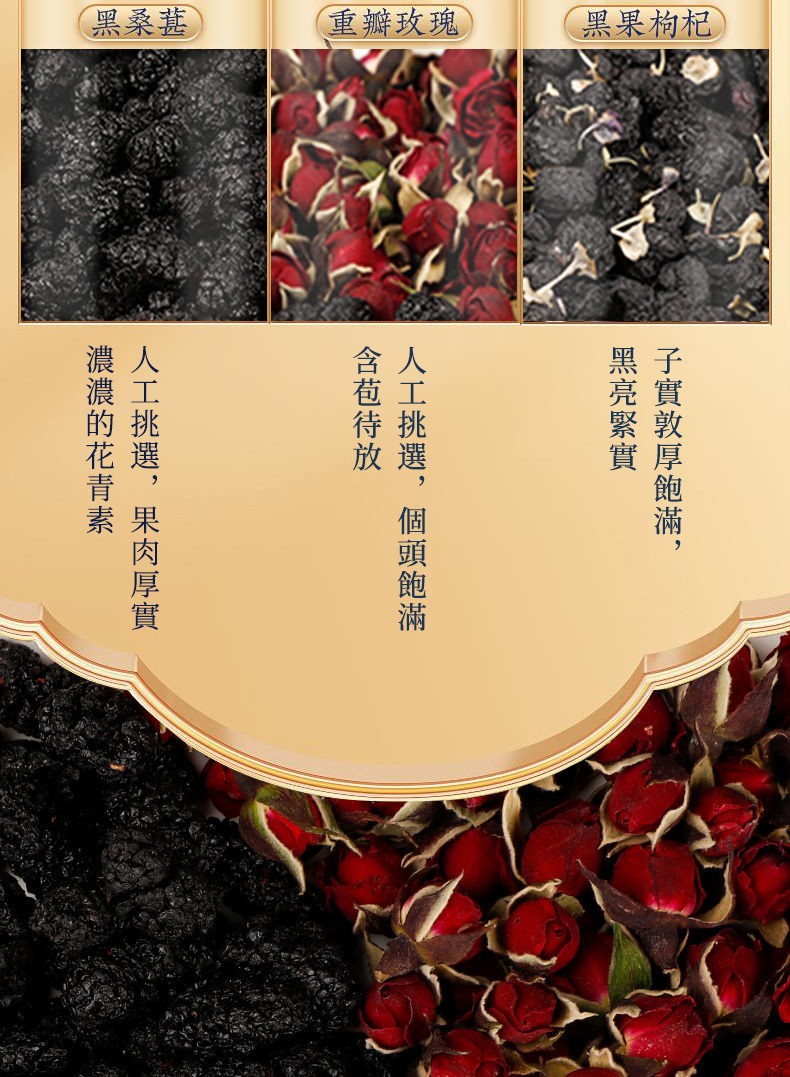 沁晚香黑枸杞桑葚玫瑰茶组合花茶包是最有效的天然自由基清除劑,可幫助增強免疫力,延緩衰老、補腎益精、預防癌症等功效的滋補保健品推薦,養生茶飲品具有增強免疫、促進造血細胞的生長、加快新陳代謝的作用,有疏肝、理氣、開郁、和血調經、養血美容的作用。